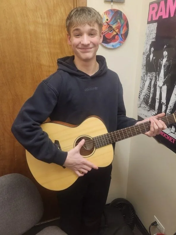 "Our son was interested in playing the guitar so we signed him up for lessons. Ryan got him playing a song on his first day! Ryan does a great job connecting with him and teaching him music that he enjoys. We've seen great progress over the past year and a half and would recommend Ryan to others looking to learn guitar."